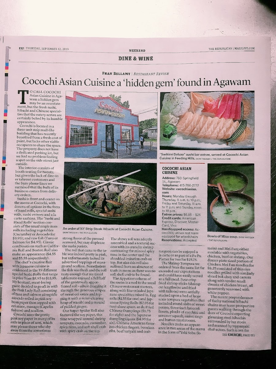 From a reviewer’s perspective, the menu at Cocochi Asian Cuisine offers a broad and satisfying range of options that cater to both sushi lovers and fans of hearty Japanese-style entrées. The sushi selection is approachable and varied, featuring items like the Vegetable Roll ($4), Kani Roll ($8), and Alaskan Roll ($13), alongside classics such as the Salmon Roll ($6) and Yellowtail Roll ($15). For a more indulgent experience, the Dragon Roll ($8), Volcano Roll ($4), and the creatively named Out Of Control Roll ($17) stand out among the special rolls. The hibachi dinners are equally appealing, with combinations like Salmon & Chicken ($13) and New York Strip & Shrimp ($12) offering generous portions and flavorful variety. Noodle lovers can enjoy dishes such as Vegetable Yakisoba ($1), Chicken Yakisoba ($2), or Beef Yakisoba ($3), while classic appetizers like the Egg Roll ($1), Shumai ($6), and Shrimp Tempura ($8) provide a strong start to the meal. The kitchen specials, including General Tso’s Chicken ($1), Sesame Chicken ($2), and Orange Chicken ($3), deliver familiar comfort flavors, complemented by lighter options like Seaweed Salad ($7) and Hot & Sour Soup ($2). Overall, the menu strikes a nice balance between affordability and variety, making it a reliable choice for both casual dining and satisfying cravings for Asian cuisine.